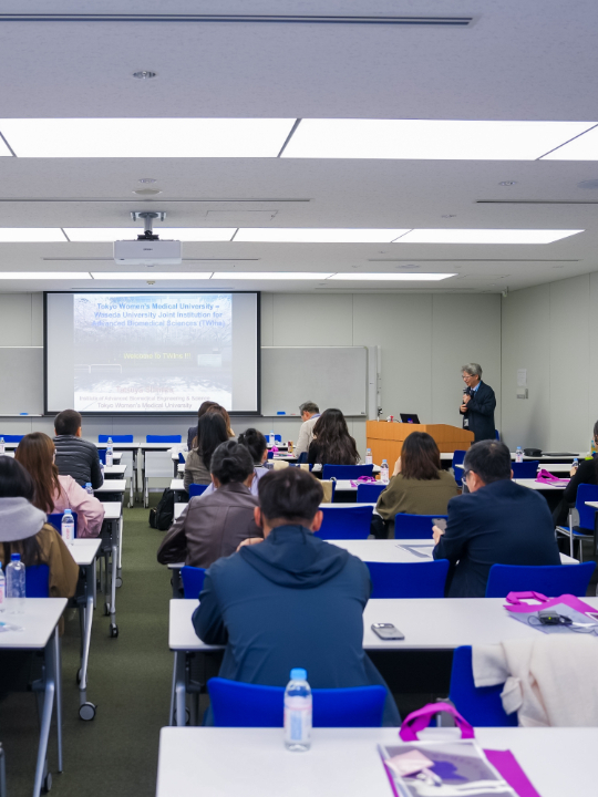 东京女子医科大学校长三谷昌平致欢迎辞。教授正宗贤、教授清水达也带领学员走进先端生命医科学研究教育机构TWins,实地参观前沿实验室与智慧化手术室,并围绕生命科学与AI医疗的融合应用展开技术分享,助力学员洞察大健康产业未来趋势。