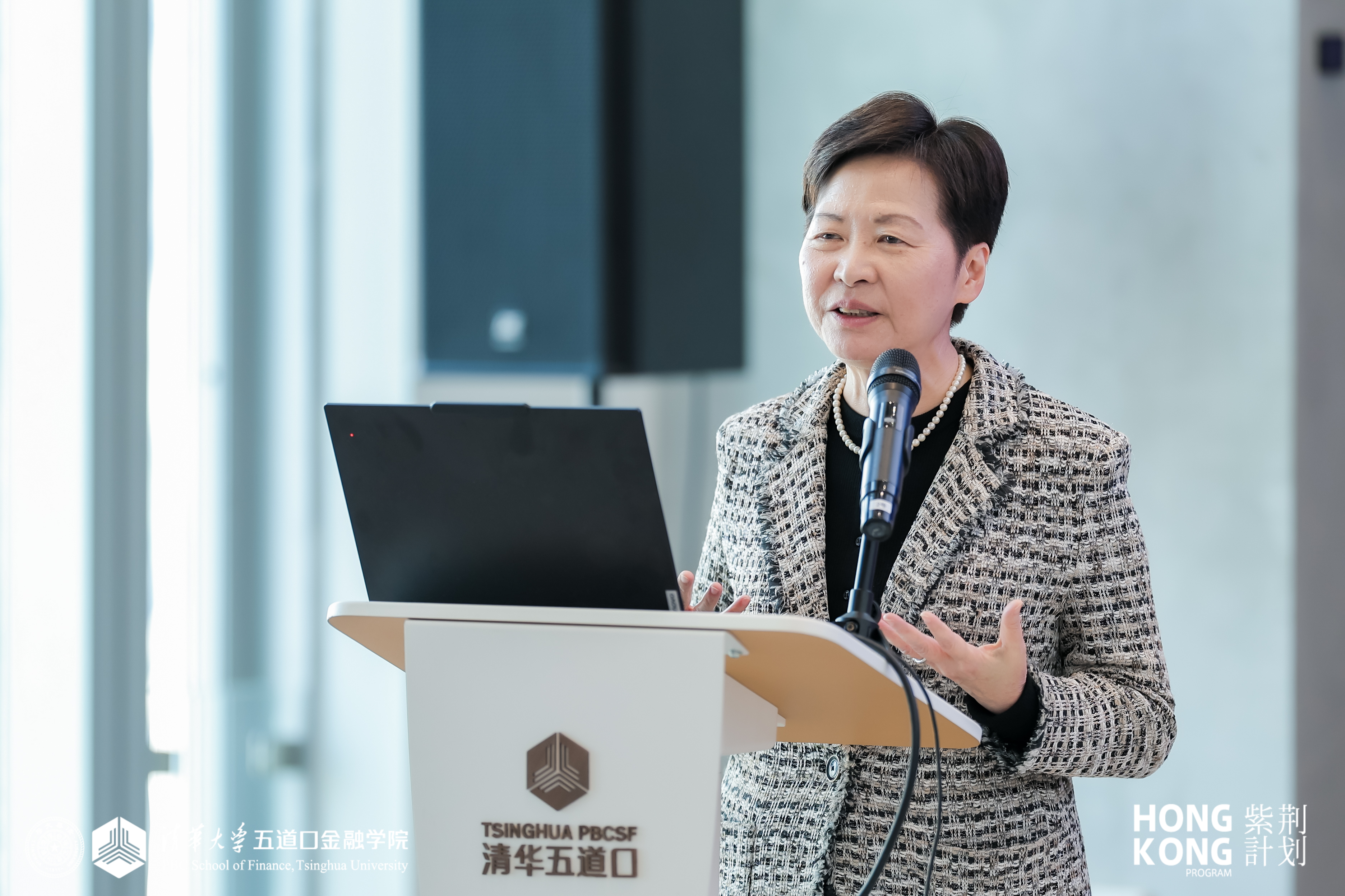 林郑月娥是香港首位由女性担任的行政长官。从1980年代加入香港政府,历经二十个公务岗位,从发展局局长、政务司司长到第五任行政长官,四十二年的公职生涯,有丰富的政策制定和执行经验,深度见证了香港每一个重大历史节点。她指出,“一国两制”已进入与强国建设、民族复兴紧密挂钩的新阶段,实践需坚守四大原则:坚守一国之本、善用两制之力;安全与发展“两条腿走路”,以国安法筑牢底线、以发展回应民生;发挥“背靠祖国、联通世界”枢纽优势;弘扬和平包容等核心价值。