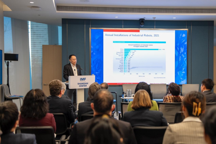 在会上,陆毅分享了其研究团队关于工业机器人对中国劳动力市场影响的最新研究成果。该研究基于中国家庭追踪数据,分析了工业机器人对劳动力市场的影响,揭示了技术进步如何改变工人的就业、收入和职业选择。结合人工智能加速发展的现实背景,陆毅指出,AI 正在以更系统的方式重塑劳动力市场结构,其影响已超越传统制造环节,涉及就业结构、收入分配和职业选择等多个方面,为理解技术进步与制造业升级、实现高质量发展提供了重要学术参考。